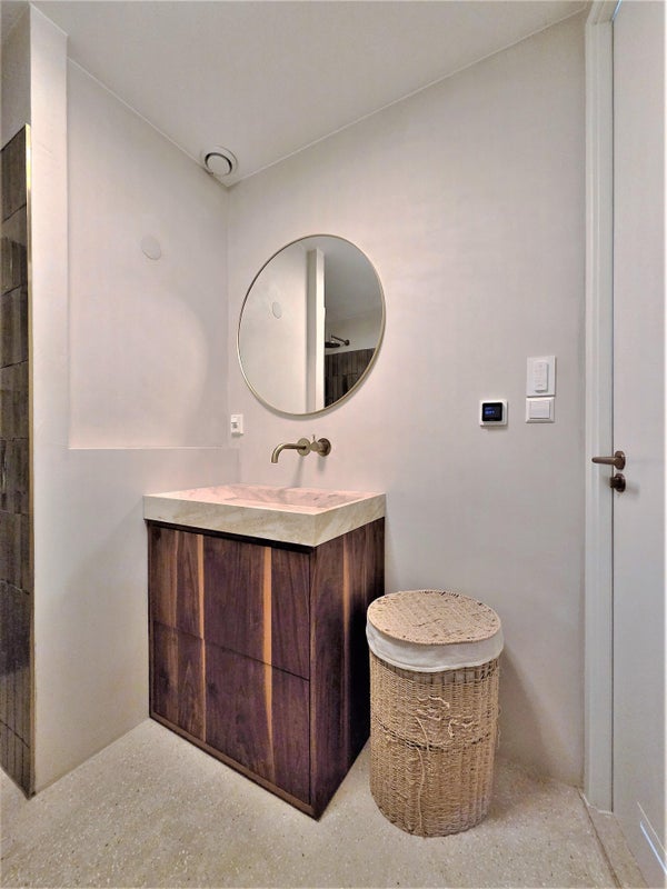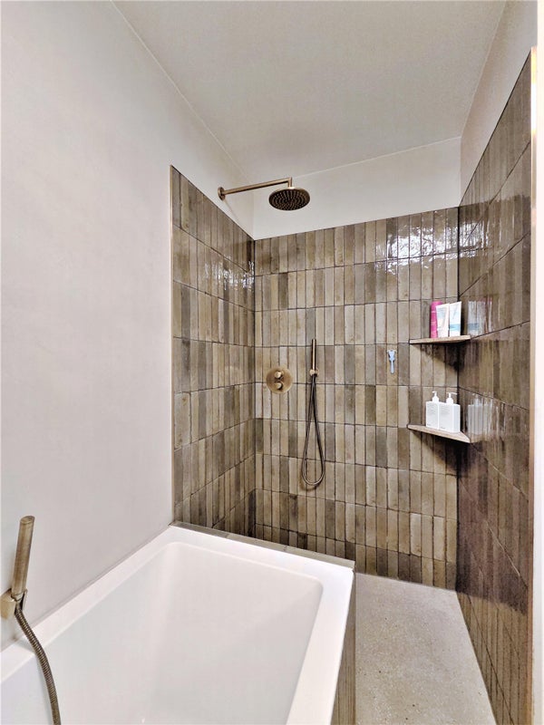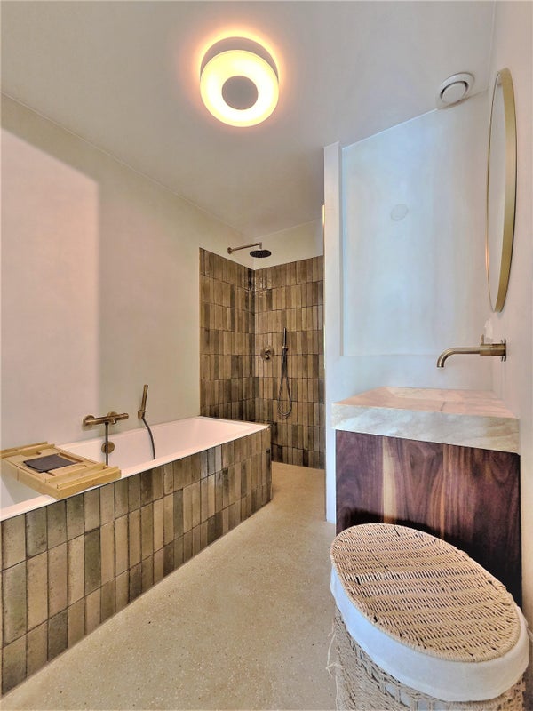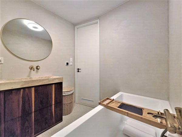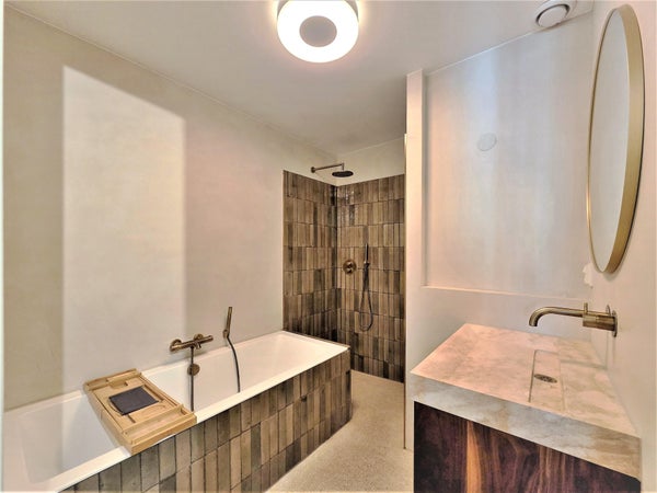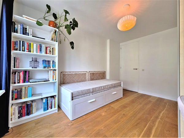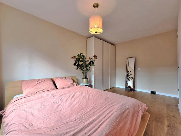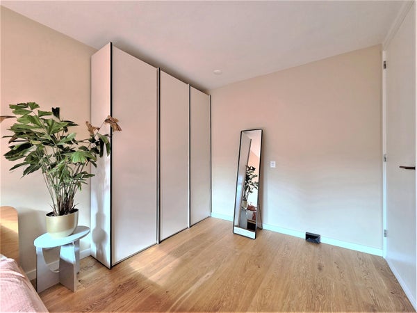 Aan de achterzijde bevindt zich de main bedroom met uitzicht op de binnentuinen, daarnaast een tweede slaapkamer. De luxe badkamer is uitgerust met een ligbad, inloopdouche en wastafel. Aan de voorzijde ligt de derde (slaap)kamer met grote kastenwand, ideaal als home office of logeerkamer.