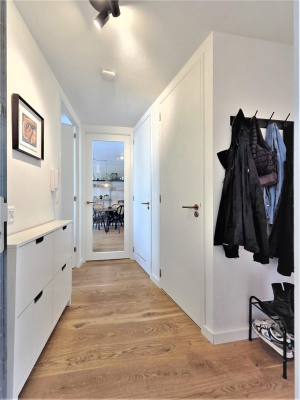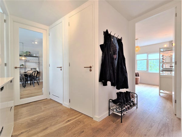 Via het gemeenschappelijke trappenhuis bereik je de woning op de tweede verdieping. De hal met apart toilet geeft toegang tot alle vertrekken.
