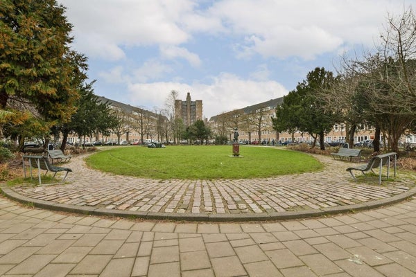 Het appartement is gelegen aan het Merwedeplein in de Rivierenbuurt. Het Merwedeplein is omsloten door de Waalstraat, de Churchill-laan, de Rooseveltlaan en het Victorieplein, ook wel het Hilwis-complex genoemd.