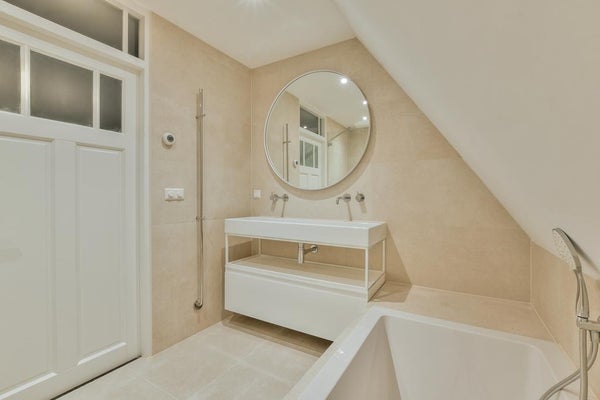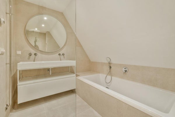Interne trap naar de vierde verdieping: overloop met toegang tot de badkamer die voorzien is van een inloopdouche, ligbad en een dubbele wastafel. Aparte ruimte voor wasmachine/droger. Tevens bevindt zich op deze verdieping de derde slaapkamer.