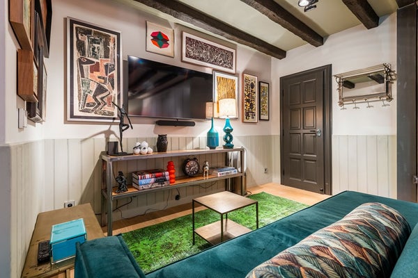 Geniet van 108m² (ongeveer 1.200 vierkante voet) prachtig ingerichte ruimte, met overal nieuwe, hoogwaardige apparatuur, waaronder een moderne keuken (met vaatwasser) en een aparte wasruimte met een separate Miele-wasmachine en droger. De woonkamer is perfect voor vermaak of ontspanning, met twee aparte media zones met tv's en surroundgeluid, een hedendaagse bio-ethanolhaard en grote ramen met uitzicht op een groenstrook en een buitengewoon tuin. Oorspronkelijk een koetshuis uit de jaren 1890, beschikt het huis over historische grote ramen in combinatie met een moderne inrichting, geaccentueerd door prachtige mid-century Italiaanse verlichtingsarmaturen en originele kunstwerken, die de hoge esthetiek en aandacht voor detail van het appartement onderstrepen.