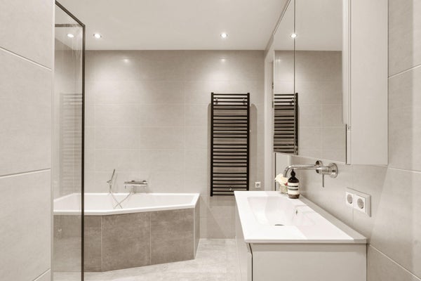 • Moderne badkamer met ligbad, inloopdouche, dubbele wastafel