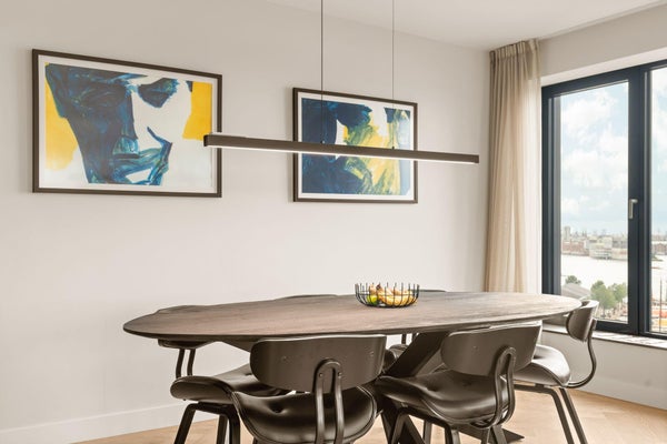 Wonen op de 11e etage van het stijlvolle Pontkade-complex betekent elke dag ontwaken met een levend schilderij voor je neus. Dit lichtovergoten hoekappartement van ca. 105 m² combineert luxe, rust en een ongekend uitzicht over het IJ, van de binnenstad tot ver richting Haarlem. En alsof dat nog niet genoeg is: er is een optioneel bij te huren eigen parkeerplek, een grote berging, toegang tot een groene binnentuin en woont in een van de meest bruisende wijken van Amsterdam.