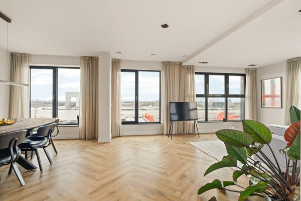LUXE 3-KAMERAPPARTEMENT MET (EIGEN OPTIONEEL BIJ TE HUREN) PARKEERPLAATS EN SPECTACULAIR UITZICHT OVER HET IJ, WONEN OP HOOG NIVEAU AAN DE NDSM-KADE