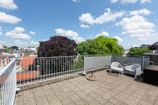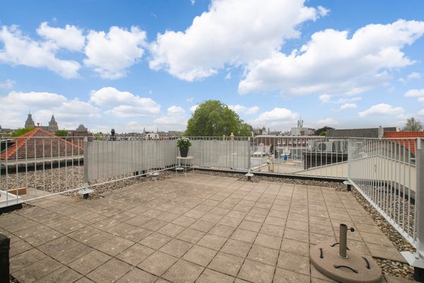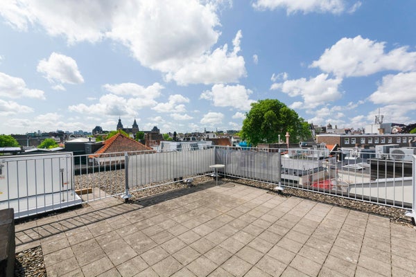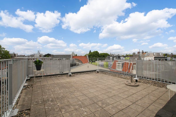 De absolute highlight van dit appartement is prive toegang tot het buitengewoon royaal en zonnige dakterras met uitzicht over de Amsterdamse daken en zicht op onder andere het Rijksmuseum welke menig hart sneller zal doen kloppen.