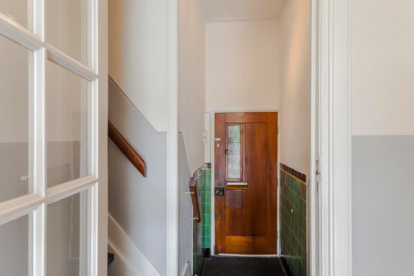 Er is een privé ingang naar het appartement vanaf de straat. Hal, toilet, ruime woonkamer met een en-suite eetkamer gescheiden door schuifdeuren, volledig uitgeruste keuken, 2 ruime slaapkamers, badkamer met een badkuip, wastafel en aparte douche en een balkon aan de achterkant.