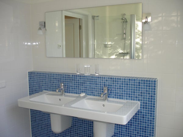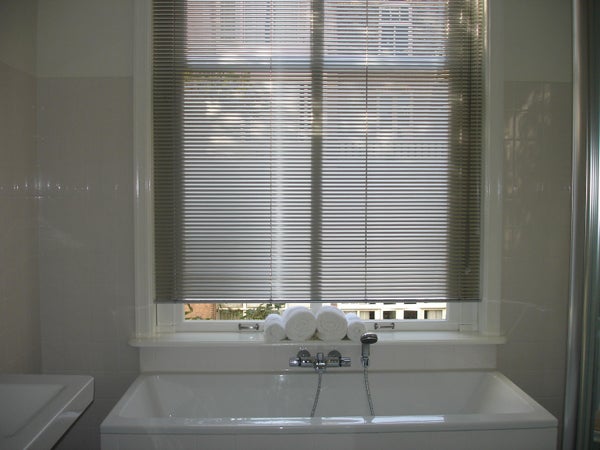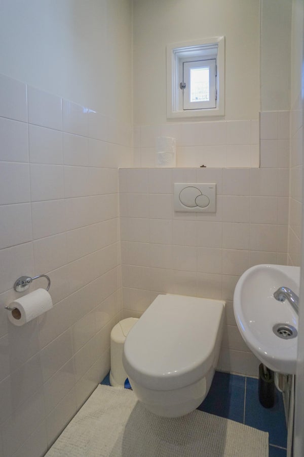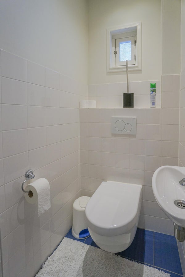 Derde verdieping: Overloop, waskast met een wasmachine en droger, apart toilet, master bedroom met een dubbel bed en garderobe en een badkamer met dubbele wastafel, bad en aparte douche.