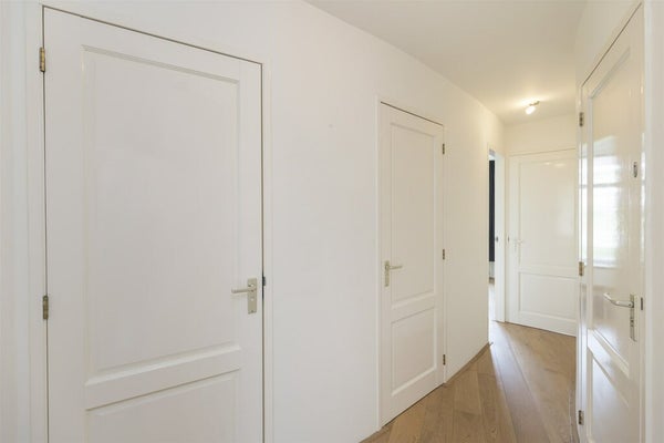 Via de gemeenschappelijke trap bereikt u dit prachtig gerenoveerde appartement op de tweede verdieping. Bij binnenkomst zorgt een uitnodigende hal voor toegang tot alle kamers.
