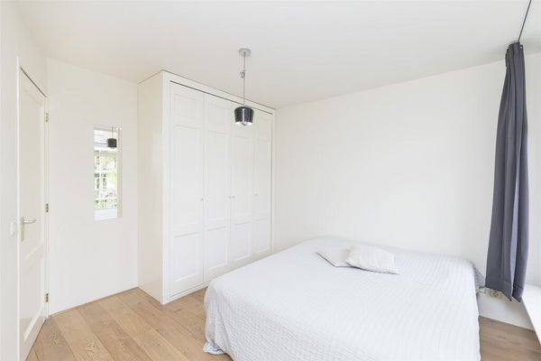 Aan de achterkant vind je twee comfortabele slaapkamers, elk met directe toegang tot het zonnige balkon. De master bedroom heeft een inbouwkast en een tweepersoonsbed. De tweede slaapkamer wordt leeg opgeleverd en kan worden ingericht naar jouw wensen, ideaal als thuiswerkplek of gastenkamer, en biedt ook toegang tot de wasruimte (inclusief een nieuwe was- en droogmachine) en wat opbergruimte.