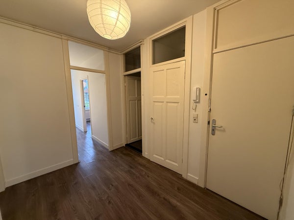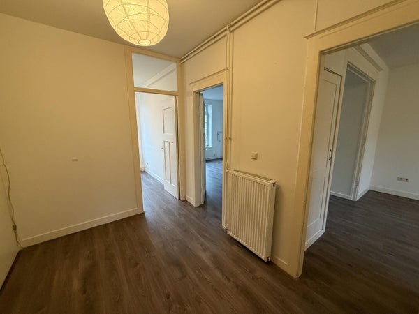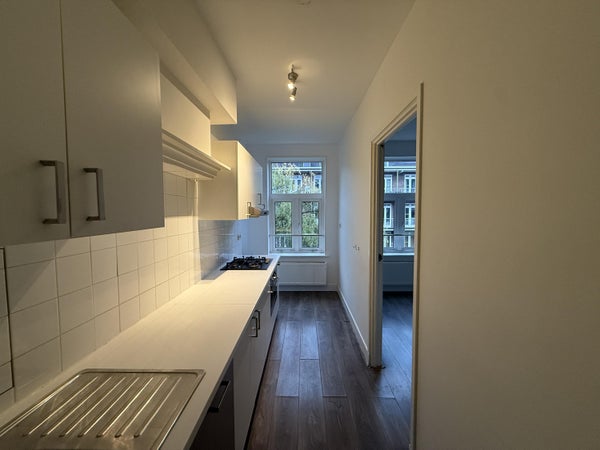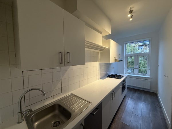 Op de tweede verdieping van een keurig pand ligt dit lichte en prettig ingedeelde vierkamerappartement. Via de entree bereikt u de hal, die toegang biedt tot alle vertrekken. De ruime, zonnige woonkamer leent zich perfect voor een comfortabele zit- en eethoek en biedt toegang tot het balkon aan de achterzijde. De dichte keuken is voorzien van apparatuur en eveneens verbonden met het balkon. Aan de achterzijde bevindt zich een slaapkamer met uitzicht op de binnentuinen. De tweede slaapkamer, gelegen aan de voorzijde, is ruim en licht en kan uitstekend dienen als hoofdslaapkamer, werkruimte of logeerkamer. De badkamer is praktisch ingedeeld en beschikt over een douche, toilet en wastafel. Dankzij de slimme indeling is dit een woning die comfortabel wonen biedt aan stellen, kleine gezinnen of twee woningdelers.