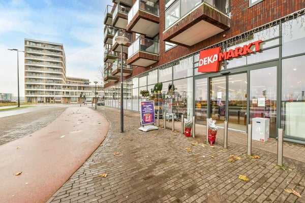 IJburg biedt voor ieder wat wils. Op 300 meter van het appartement vindt u de bloeiende Watersportvereniging IJburg en de culturele ontmoetingsplek Factor IJ met kunstuitleen, designwinkel en kunstcafé. Strandgangers kunnen op zomerse dagen zwemmen en surfen bij het stadsstrand, wandelen in het groene Diemerpark of fietsen langs Vecht en Gein. Voor de terras liefhebbers is er genoeg keuze bij de vele restaurants aan de haven, langs de IJburglaan of op het Steigereiland. Om de hoek is een Dekamarkt en het winkelcentrum van IJburg is op fietsafstand met twee grote supermarkten (Albert Heijn & Vomar), HEMA, de Bagels & Beans, drogist, een goede boekwinkel én diverse winkels voor de dagelijkse boodschappen. Elke zaterdag is er een lokale "Reuring markt" op het Joris Ivensplein (zie voor het uitgebreide aanbod de website van reuringmarkt). Ook veel van de overige voorzieningen zoals basisscholen, kinderopvang, voortgezet onderwijs (VWO, HAVO en VMBO), sportschool én een medisch centrum met apotheek zijn op loop- en fietsafstand. De ligging is daarnaast strategisch: nabij het centrum van Amsterdam, de Ringweg A10 en de toegang tot de A1. Tramlijn 26 brengt u in een kwartier naar het Muziekgebouw aan het IJ, de Openbare Bibliotheek Amsterdam en het Centraal Station. Bus 66 heeft een halte onder het appartement en rijdt in 25 minuten naar station Bijlmer ArenA.
