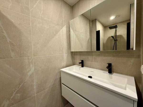 - Eén badkamer met inloopdouche, toilet en wastafel