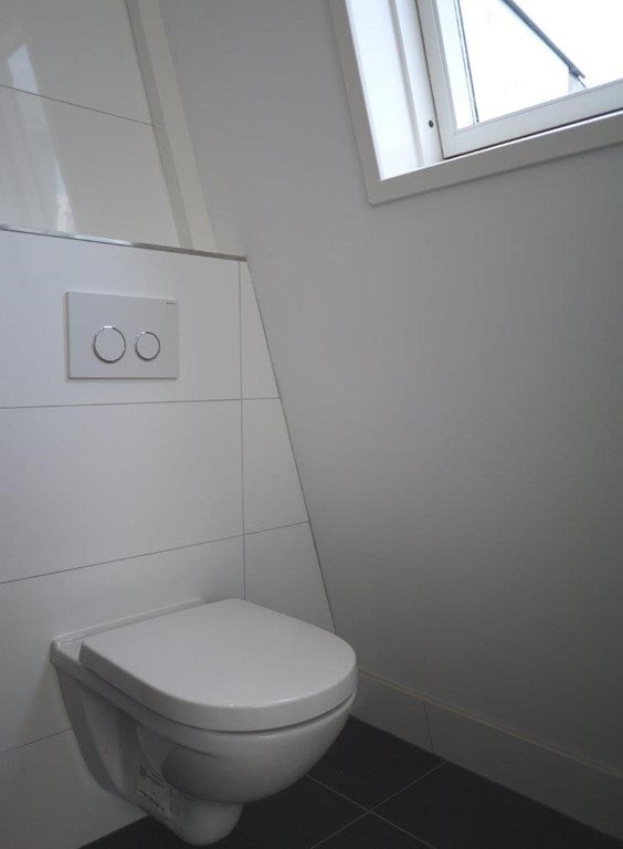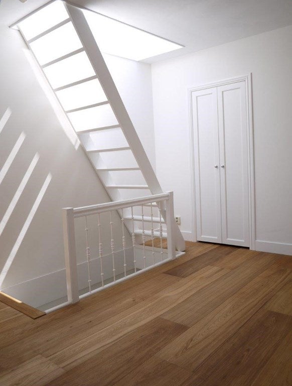 Middels de inpandige trap komt op de vierde verdieping, hier treft u de slaapkamer en badkamer. de slaapruimte is voorzien van een ruime kast met wasmachineaansluiting. De badkamer beschikt over een tweede toilet, wastafelmeubel en ruime inloopdouche.