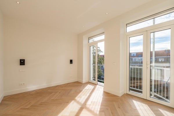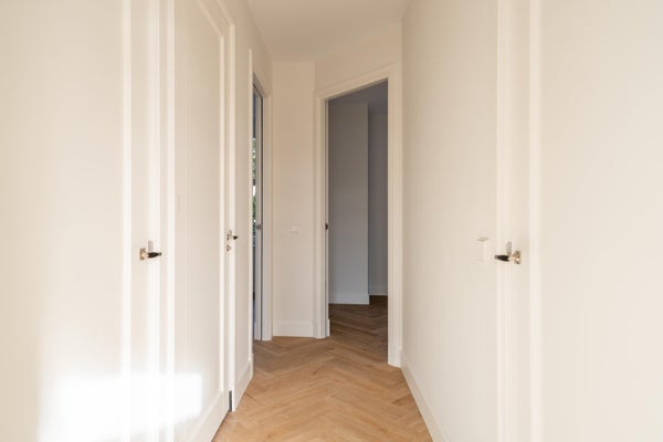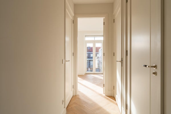 Via het trappenhuis bereik je de entree op de derde etage. Vanuit de hal heb je toegang tot alle vertrekken. Aan de voorzijde bevinden zich twee ruime en lichte slaapkamers. In het midden ligt de moderne, luxe badkamer, en aan de achterzijde vind je nog een goed bemeten slaapkamer met toegang tot het heerlijke balkon.