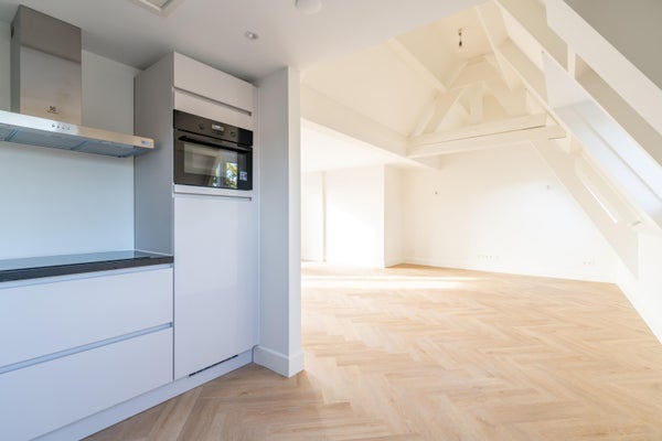 Op de vierde verdieping bevindt zich de open en ruime woonkamer met aangrenzende keuken. Deze is uitgerust met luxe inbouwapparatuur en biedt alles wat je nodig hebt om comfortabel te koken en te genieten.
