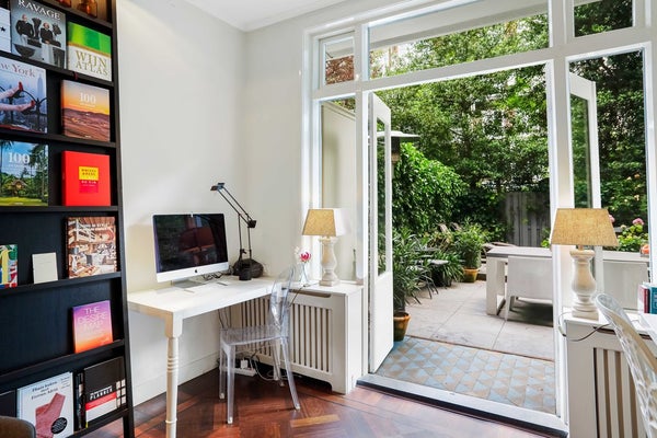 Dubbele openslaande deuren geven toegang tot een goed onderhouden en zonnige tuin van circa 80 m2.