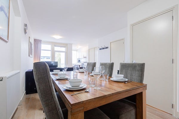 Het appartement ligt naast het Hugo de Grootplein met leuke terrassen, winkels en café's. De binnenstad ligt op loopafstand.