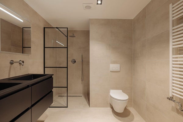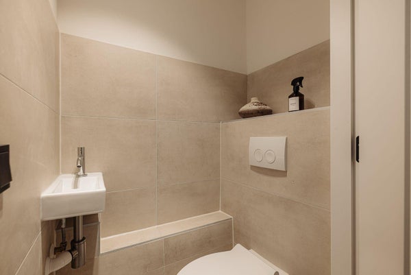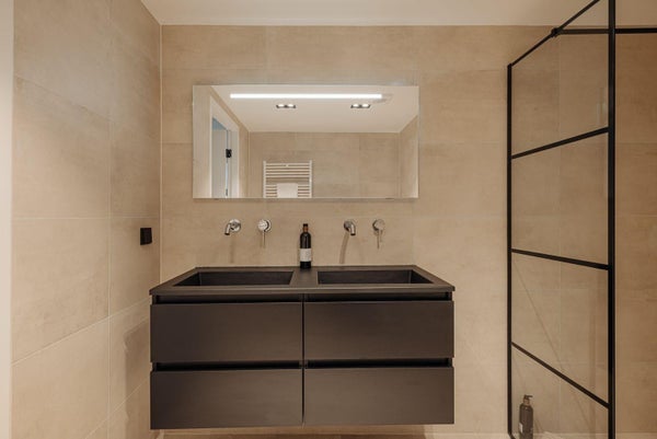 - Moderne badkamer, voorzien van inloopdouche, wastafelmeubel en hoogwaardige afwerking.