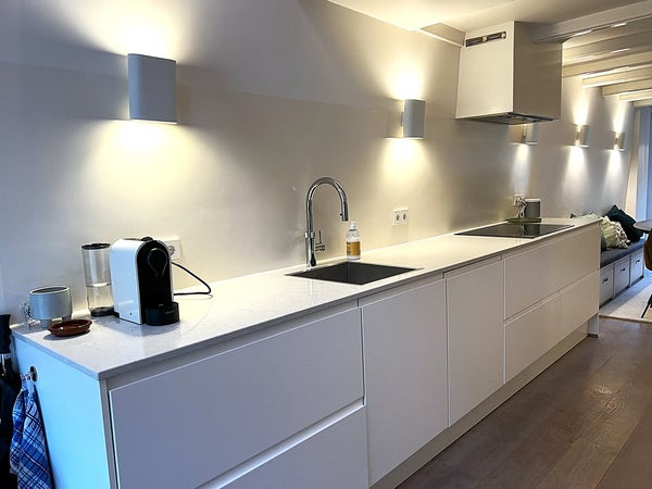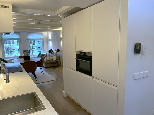 Via de gezamenlijke trap bereik je de tweede verdieping waar je het appartement binnenkomt. De woonkamer is aan de voorkant gelegen en kijkt uit op de prachtige gracht. De keuken is volledig uitgerust met inbouwapparatuur. Aan de achterkant van het huis is er een grote badkamer met inloopdouche, dubbele wastafel en een toilet. De master bedroom is gelegen op de derde verdieping aan de voorkant en heeft een eigen douche. De tweede slaapkamer is aan de achterzijde en heeft toegang tot de gezellige terras.