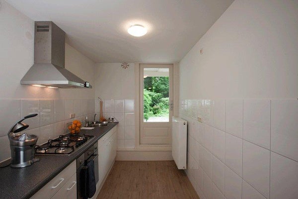 Overloop, ruime kamer met dubbel openslaande deuren naar de achtertuin die is gelegen op het Noord-Westen. Aan de voorzijde van de woning is een slaapkamer gelegen. De badkamer is v.v. wastafel en douche. De tweede keuken is aan de achterzijde gelegen, geeft toegang tot de tuin en is voorzien van alle moderne inbouwapparatuur.