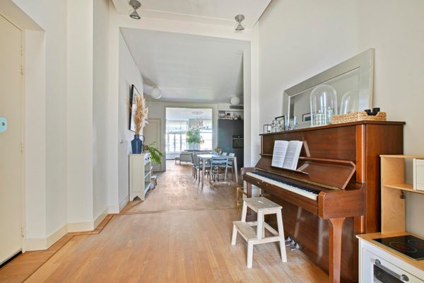 De royale woonkeuken is recent volledig vernieuwd en voorzien van hoogwaardige inbouwapparatuur, waaronder een gaskookplaat, Quooker, vaatwasser, afzuigkap, koelkast, vriezer én een nieuwe Miele-oven. De moderne afwerking sluit naadloos aan bij het historische karakter van de woning. De lichte, ruime woonkamer vormt het centrale leefgedeelte. Vanuit de woning bereikt u tevens het balkon van circa 4 m² op het oosten, met een prachtig vrij uitzicht over de groene binnentuinen, een heerlijke plek voor een rustige ochtendkoffie.