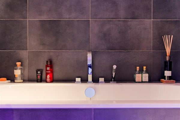 Het toilet en de badkamer zijn luxueus afgewerkt met Dornbracht sanitair en Villeroy & Boch douche en ligbad.