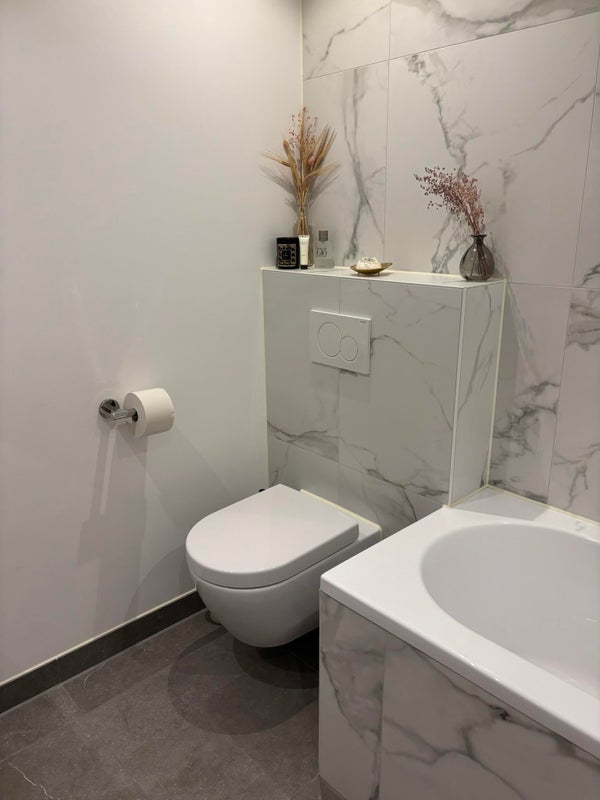 Op de eerste verdieping bevinden zich drie slaapkamers: een master bedroom met King-size bed en twee kinderkamers, ideaal voor jonge kinderen. De badkamer is uitgerust met toilet, bad en wastafel, en er is een tweede aparte douche, wat het samenleven met kinderen extra comfortabel maakt.