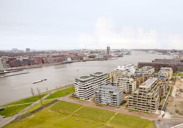 Dit luxe penthouse op de 23e etage van het B'Mine complex biedt een adembenemend uitzicht over Amsterdam en heeft een groot dakterras. Binnen zijn er 3 slaapkamers en een ruime woonkamer van 54,8 m2 met een open keuken, voorzien van hoogwaardige ATAG apparaten. De luxe badkamer beschikt over zowel een bad als een inloopdouche. B'Mine bevindt zich in een levendige buurt vol hotspots en heeft een uitstekende verbinding met het centrum van Amsterdam.