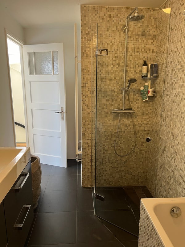 Op de derde verdieping bevinden zich aan de achterzijde nog 2 slaapkamers, een badkamer met douche, bad, dubbele wastafel en ruimte voor de wasmachine/droger.
