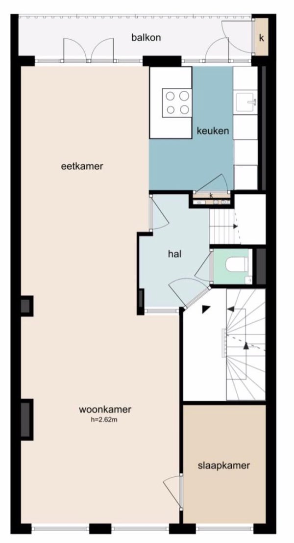 Via de gemeenschappelijke entree, die slechts gedeeld wordt met de bewoner van de eerste verdieping, ga je naar de tweede verdieping.