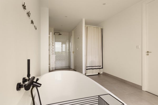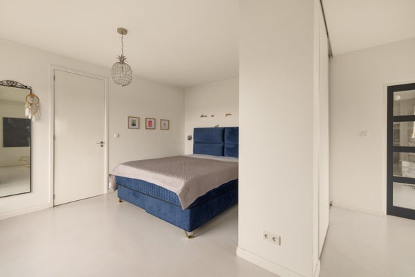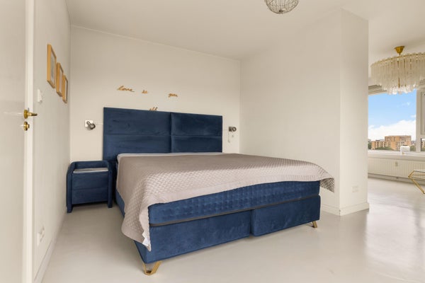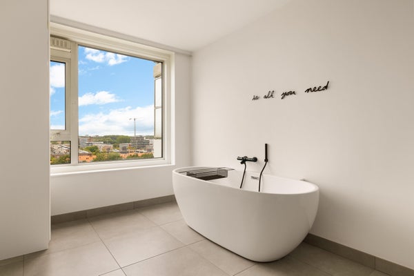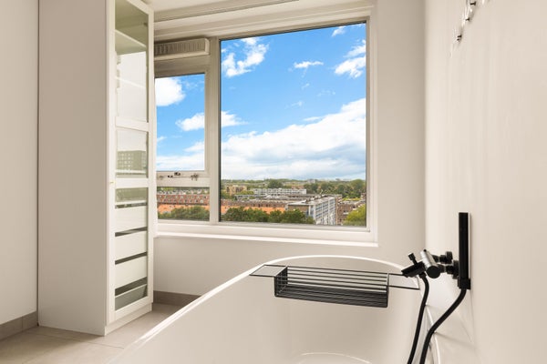 De hoofdslaapkamer is gescheiden door Franse deuren en verbindt met een ruime inloopkast, die ook als tweede slaapkamer of home office kan worden gebruikt. Aangrenzend aan de slaapkamer beschikt de royale badkamer over een vrijstaand bad met uitzicht op de stad, evenals een aparte, goed afgewerkte inloopdouche.