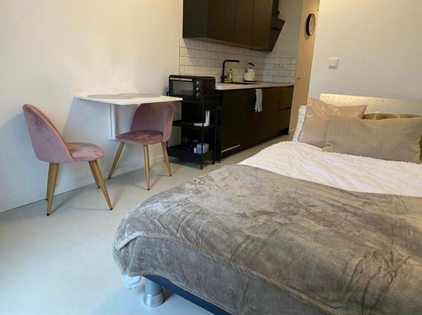 De tweede slaapkamer is ontworpen in een studio-stijl en is compleet met een eigen moderne keuken en badkamer, met een inloopdouche en een apart toilet.