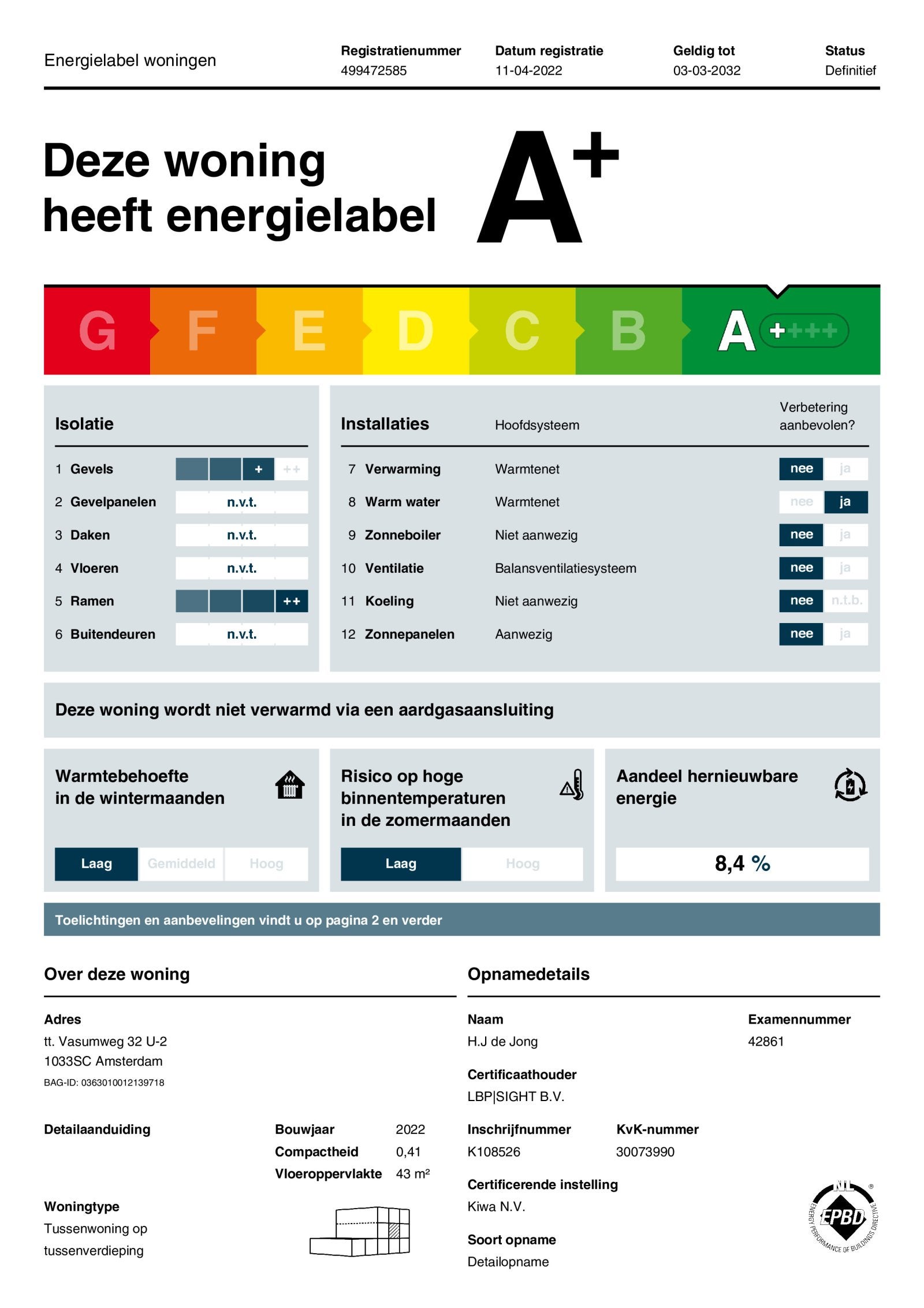 Te huur: Appartement tt. Vasumweg 32 U2 in Amsterdam