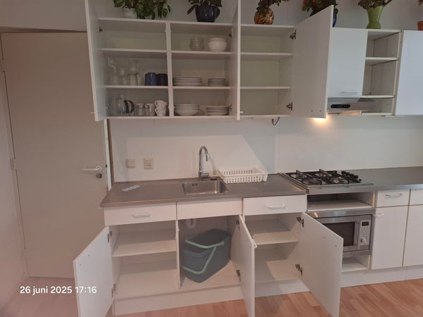 U huurt één zelfstandige woonruimte 76 m2 met 2 toiletten + 1 ligbad + 1douche + 1 keuken-vertrek + 2e open keuken in de niet afsluitbare woonkamer + 2 slaapkamers + 3e werkkamer ensuite + 1 balkon.