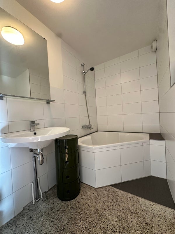 De badkamer is doordacht uitgerust met een bad, douche, dubbele stopcontacten en een wastafel met meubelen, die zowel comfort als functionaliteit in het dagelijks leven bieden.