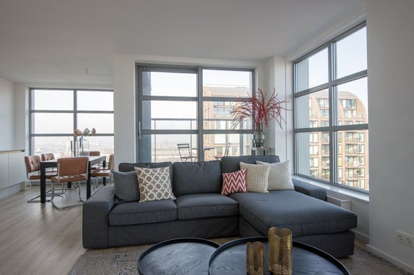 Dit ruime vierkamerappartement van 83 m² ligt op de 8e verdieping en heeft een loggia op het noordwesten. Met drie slaapkamers kun je kiezen om extra kamers in te richten als logeerkamer of walk-in closet. De luxe Pallas Bruynzeel keuken is uitgerust met een zwart composiet aanrechtblad en ingebouwde Siemens apparatuur, waaronder een afwasmachine, koel-vries combinatie, inductiekookplaat, afzuigkap en combi-oven. De moderne badkamer beschikt over een brede wastafel, inloopdouche en designradiator, met een separaat toilet. Het appartement is onderdeel van project De Werf op de NDSM werf in Amsterdam Noord, met winkels en horeca in de nabijheid. Huurperiode is minimaal één jaar met een opzegtermijn van één kalendermaand. Voor huur vereisen we een bruto jaarinkomen afhankelijk van de huurprijs.