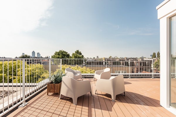 Recent gerenoveerd, gestoffeerd 2-kamerappartement van ongeveer 50m2 met lift en gezamenlijk dakterras, gelegen midden in de Pijp.