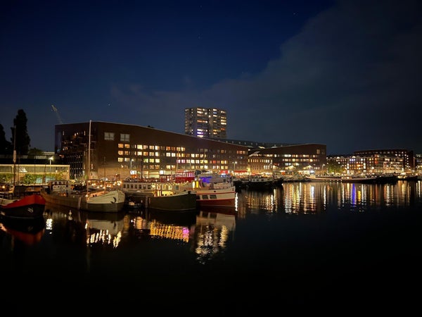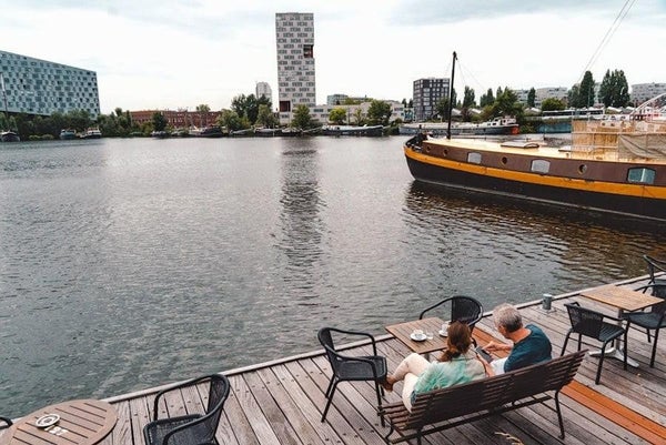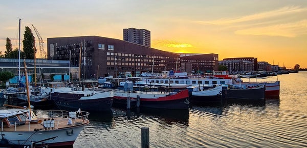 Gelegen op het rustige, autovrije Levantplein, combineert de locatie rust met de gemakken van de stad. Binnen enkele minuten bereikt u de ferry naar het levendige Amsterdam Noord, of geniet van de vele cafés, restaurants en het winkelcentrum Brazilie in de buurt. Direct aan de waterkant vindt u een kleine haven met gezellige bars, boetiekjes en zelfs een Franse bakkerij. Gezinnen zullen de nabijgelegen speeltuinen, een zwemsteiger voor de deur en verschillende uitstekende scholen op loopafstand waarderen, waaronder een van de beste basisscholen van de stad. Amsterdam Centraal Station is slechts 15 minuten fietsen, waardoor snelle toegang mogelijk is als u buiten de stad pendelt.
