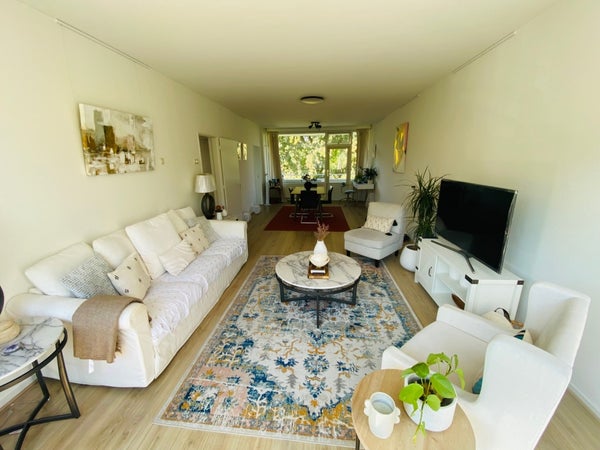 Prachtig ruim èn goed verzorgd 3-kamer appartement van maar liefst 105m2 met lift en twee balkons (oost en west), gelegen op de tweede etage, met uitzicht op een mooi aangelegd plantsoen op een fantastische locatie in Amsterdam-Buitenveldert.