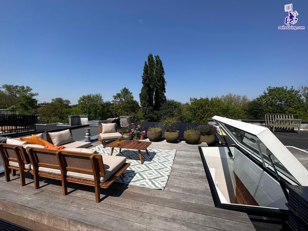 Het appartement beschikt ook over een 16 m² (binnenkort omheind) dakterras met 360 graden panorama-uitsichten.