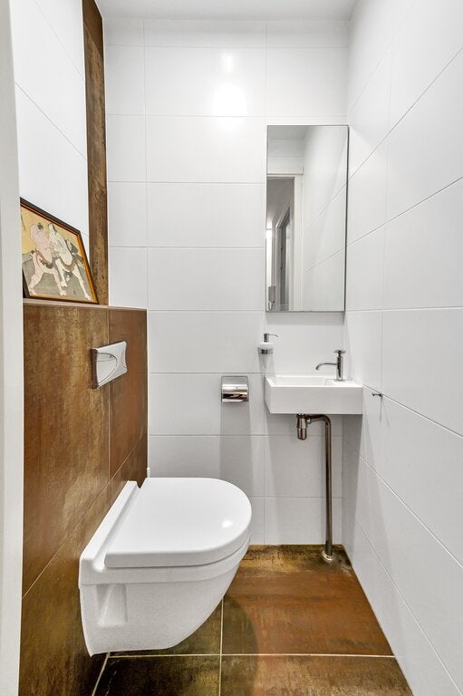 Galerij, entree, hal, twee kamers aan de galerijzijde waarvan één ruime slaapkamer volledig gemeubileerd met televisie, de andere kamer betreft een kleedkamer, ‘inloopkast’ met veel opbergruimte (respectievelijk 8 m2) van Carré Furniture, separaat zwevend toilet met fontein, de badkamer heeft een regendouche (met massage-stralen), douche bankje en een dubbele wastafel met 4 kastjes, het toilet en de badkamer zijn beide luxe afgewerkt en voorzien van een mooie brons-gouden tegelvloer (vloerverwarming aanwezig.)