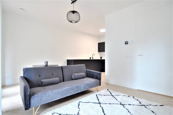 De L-vormige woonkamer, welke aan de stille binnentuin gelegen is, is compleet met de luxe open keuken in hoekopstelling. Daarnaast is de keuken erg praktisch, zo heb je de beschikking over een koelkast met vriesvak, combimagnetron, inductiekookplaat, afzuigkap en vaatwasser.