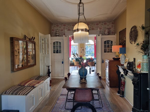 Elk deel van dit huis is hoogdoordacht – maatwerk timmerwerk, opvallende verlichting, gecureerde kunstwerken, gelaagde texturen en originele architectonische details. Het is een woning voor degenen die interieurdesign, ambacht en sfeer waarderen. Meer dan een huurwoning – het is een ervaring.