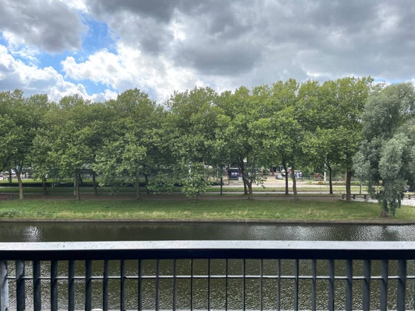Zonnig balkon op het zuiden met vrij uitzicht over doorgaande vaart