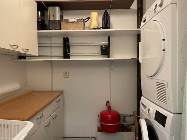 Daarnaast is er een praktische opbergkamer met ruimte voor wasmachine/droger en extra opslag.