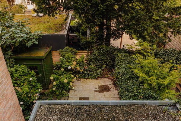 Binnenkomst middels eigen entree met een ingebouwde kast en separaat toilet. Aan de voorzijde is de riante woonkamer gelegen, het fijne van deze ruimte is dat het net boven straatniveau is waardoor er weinig inkijk is. De kamer is voorzien van een houten vloer, hoge plafond en veel lichtinval door de raampartijen aan zowel de voorzijde als achterzijde. Op dezelfde hoogte via een aparte kamer, die als werkruimte ingedeeld kan worden, is er toegang tot de tuin. Ook via de woonkamer door middel van de twee openslaande deuren is de tuin bereikbaar.
