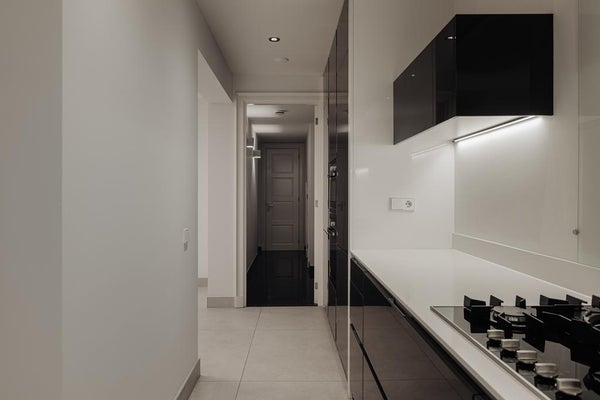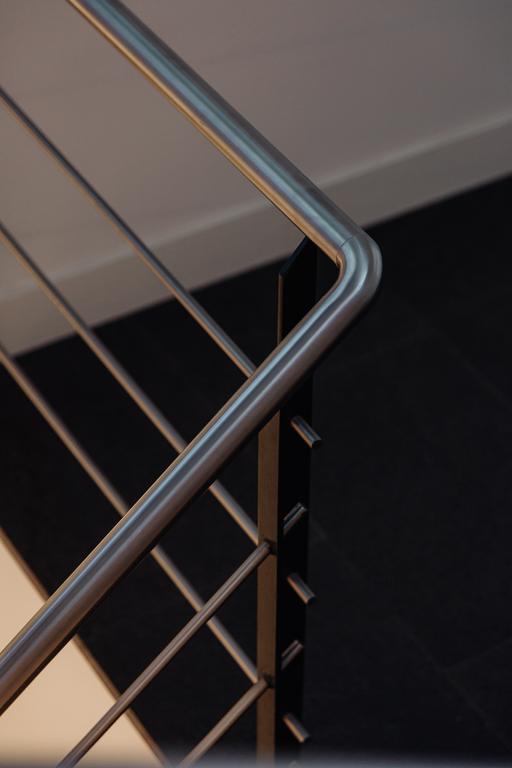 De trap naar beneden, via de woonkamer, geeft toegang tot de moderne keuken met eetgedeelte en ingebouwde kasten. De keuken is voorzien van alle apparatuur zoals een vaatwasser, oven, magnetron en een ijskast met separaat een vriezer. Op deze etage bevindt zich aan de voorzijde een slaapkamer met inloopkast en en-suite een moderne badkamer die is voorzien van een inloopdouche, toilet en wastafel met meubel.