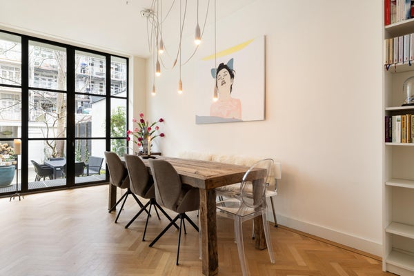 Wij bieden een luxe benedenwoning met zonnige tuin aan bestaande uit 2 verdiepingen. Het appartement is circa 125 m2.