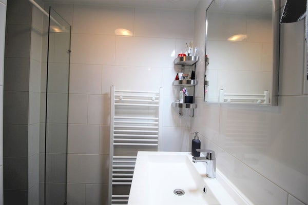 - Badkamer met douche en wastafel