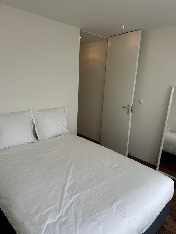 Aan de voorzijde van het appartement bevindt zich de eerste (grotere) slaapkamer, onder andere voorzien van een 2 persoons bed en inbouw kledingkast.